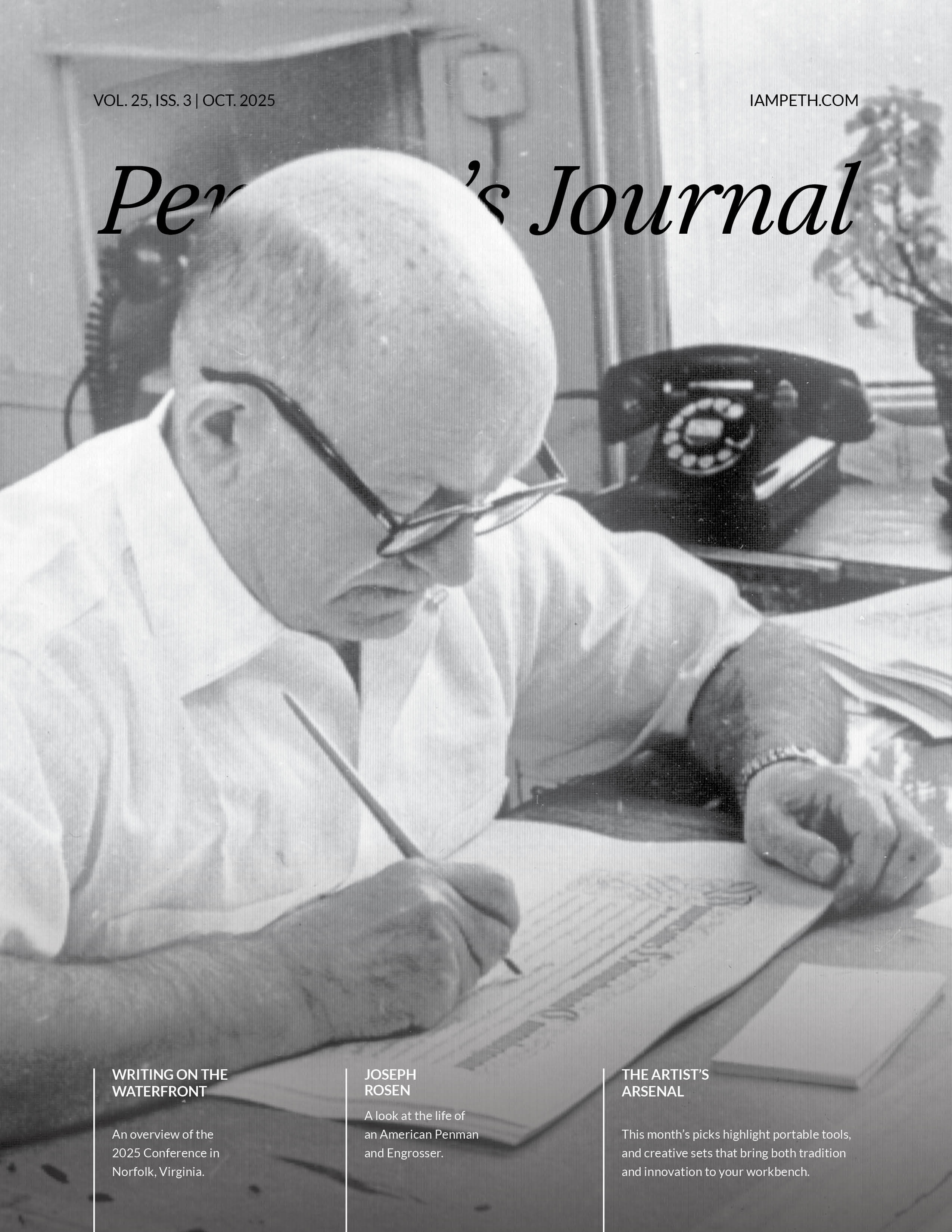 As part of the IAMPETH membership you can read and download all of our quarterly Penman's Journals which are filled with insightful articles, stunning illustrations, practical tips and more to fuel your passion for penmanship. If you're not a member yet, you can preview a free edition of the journal here